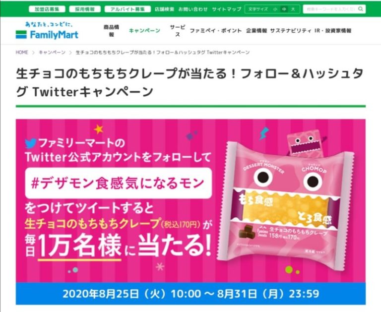 ②「#デザモン食感気になるモン」と「#ファミマ」のハッシュタグつき投稿にて応募