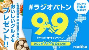 radiko “ラジオで、日本を元気に!”民放ラジオ全99局統一「#ラジオバトン99」Twitterキャンペーン。