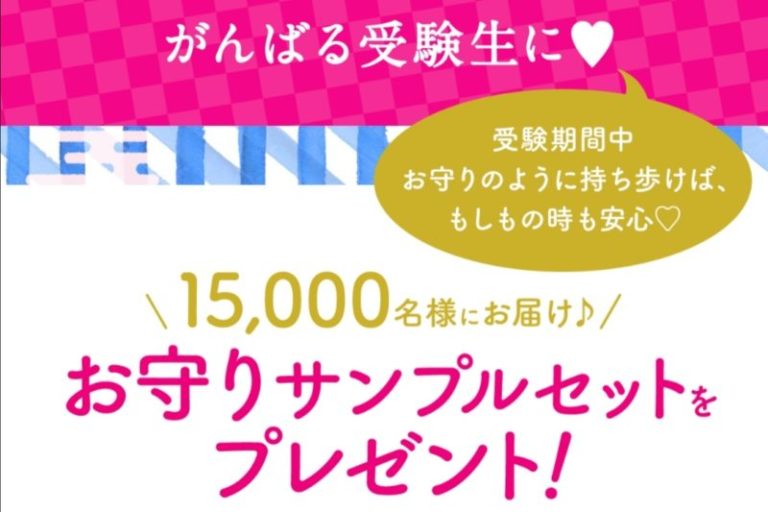 受験期間中お守りのように持ち歩けば、もしもの時も安心。 お守りサンプルセットのプレゼントキャンペーンです。