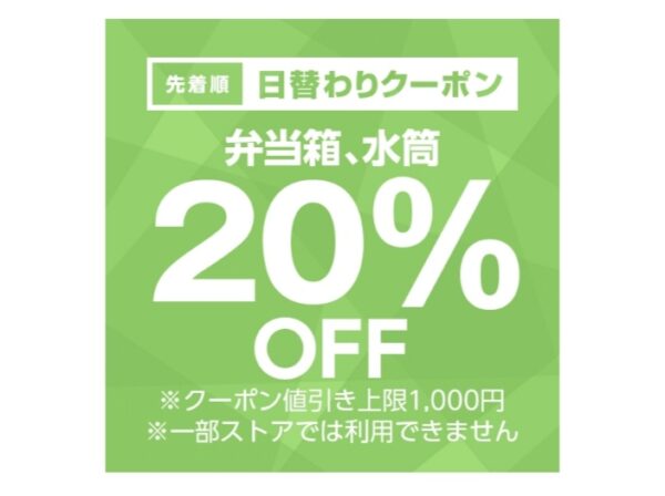 対象商品1個が20%OFF(値引き上限:1,000円)