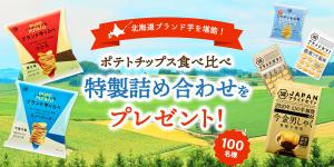「コイケなおやつ部」にログインのうえ、応募フォームに必要事項を入力のうえ応募すると、北海道ブランド芋を堪能できるポテトチップス食べ比べ特製詰め合わせが抽選で100名に当たりますよ~。「コイケなおやつ部」会員限定なので未会員の人はまず会員登録!