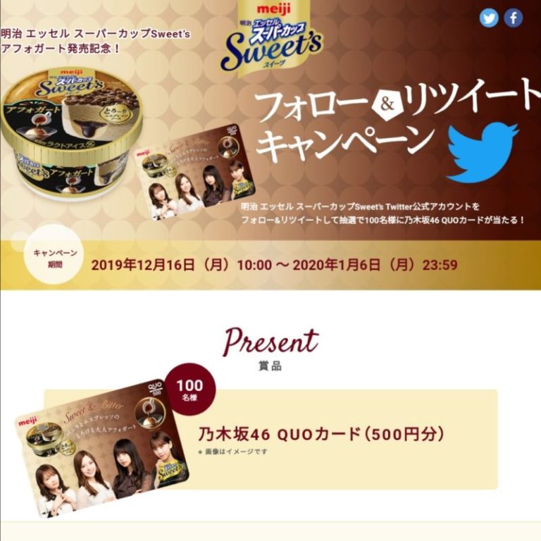 Twitterの公式アカウント「明治 エッセル スーパーカップSweet’s(Twitter:@essel_sweets)」をフォロー