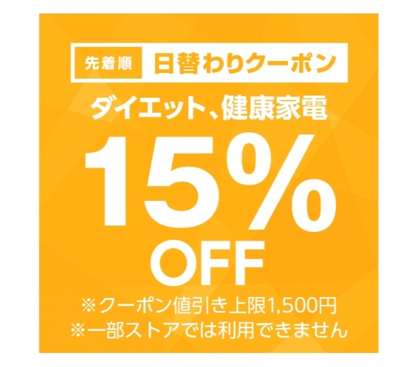【終了】Yahoo!ショッピングでダイエット、健康家電15%OFFクーポンが出現中!値引き上限は1,500円!(20/11/30限定)
