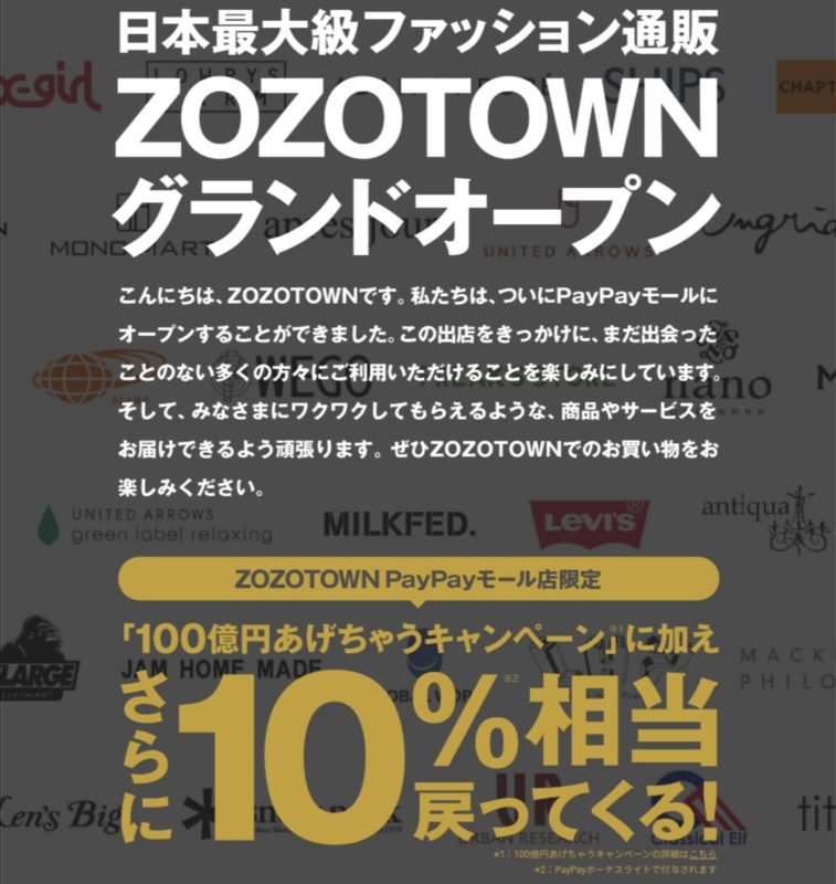 ZOZOTOWN PayPayモール店限定 さらに10%相当戻ってくるキャンペーン