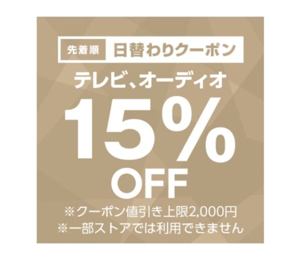 対象商品1個が15%OFF(値引き上限:2,000円)