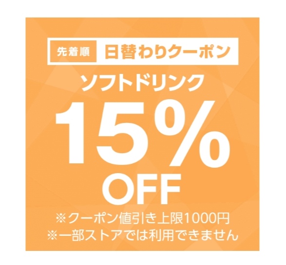 ソフトドリンクカテゴリ対象で注文金額100円以上の商品1個が対象。値引き上限は1,000円。12月7日のみ使用可能ですが、先着順なのでご注意を!まずはクーポンをゲット!どんな商品があるのか、下記サイトより確認できます。