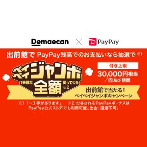 出前館にてPayPay残高での決済を利用すると抽選でき、1等~3等が当たると100%~2%還元。