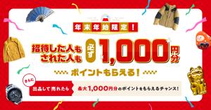 招待コードの入力でメルカリを紹介した方もされた方も必ず1,000円分のポイントがもらえる!