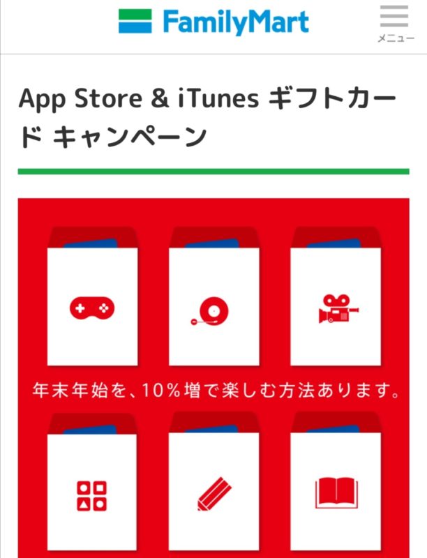 【終了】ファミマ App Store & iTunes ギフトカードバリアブル(1500-50,000) を購入&応募で購入金額の10%のボーナスコードがもらえる(1/5まで)