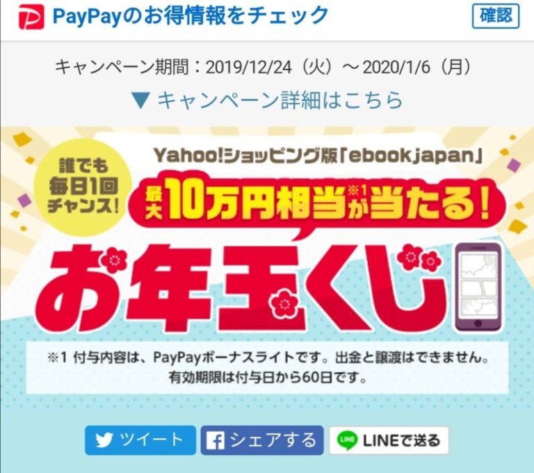 Yahoo!ショッピング版「ebookjapan」お年玉くじ2020