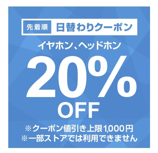Yahoo!ショッピングでイヤホン、ヘッドホン20%OFFクーポンが出現中!(21/3/10限定)
