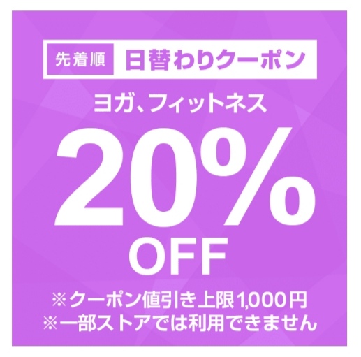 ホエイプロテイン、ヨガマット、ヨガウエア、ヨガボールなどなど。Yahoo!ショッピングでヨガ、フィットネス用品が20%OFFの先着順 日替わりクーポンが出現中。ヨガ、フィットネスカテゴリ商品で注文金額100円以上の商品1個が対象。値引き上限は1,000円です。3月19日のみ使用可能ですが、先着6,000注文限定なのでお早めに!まずはクーポンをゲットしましょ!