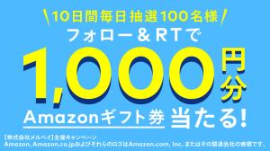 公式Twitterアカウント(@merpay_official)フォローし、キャンペーン対象ツイートをリツイートすると1,000円分のAmazonギフト券が抽選で合計1,000名に当たりますよ~!