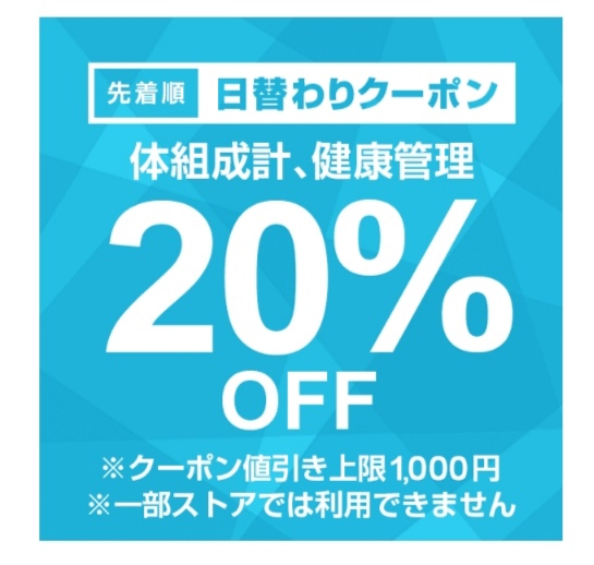 Yahoo!ショッピングで体組成計、健康管理20%OFFクーポンが出現中!体温計、パルスオキシメーターなど。(21/4/12限定)