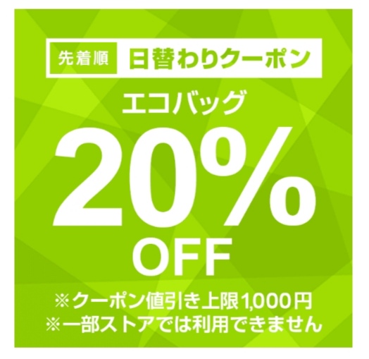 Yahoo!ショッピングでエコバッグ20%OFFクーポンが出現中!(21/4/24限定)