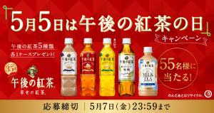 終了キリン「午後の紅茶5種類各1ケース計5ケース」が55名に当たる!(21/5/7まで)