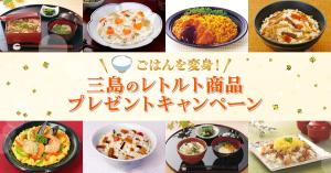 キャンペーンページにてメールアドレスを入力して応募すると「三島食品公式オンラインストア」と広島の一部の土産物店だけで販売しているレトルト商品3種セットが抽選で50名に当たりますよ~。メールアドレスだけの簡単応募ナリ!