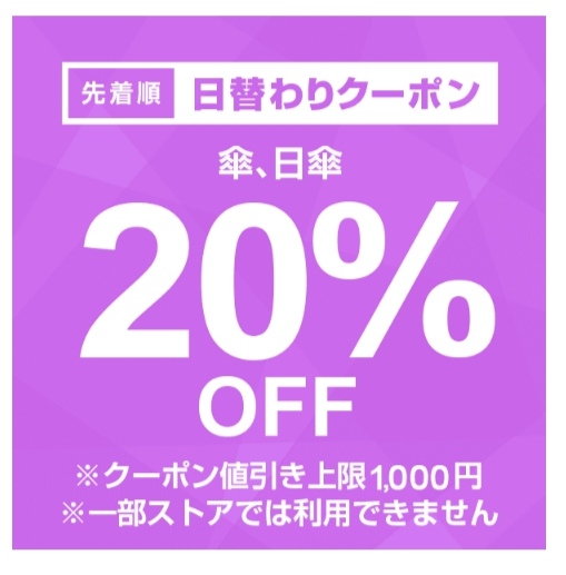 対象商品1個が20%OFF(値引き上限:1,000円)