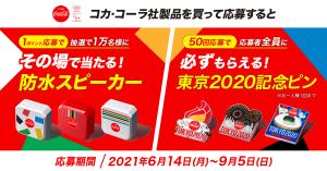 なお、今回は累計50回応募で「東京2020記念ピン 1個」または「東京2020記念ピンデザイン Coke ONスタンプ3個セット」が必ずもらえるんですって!