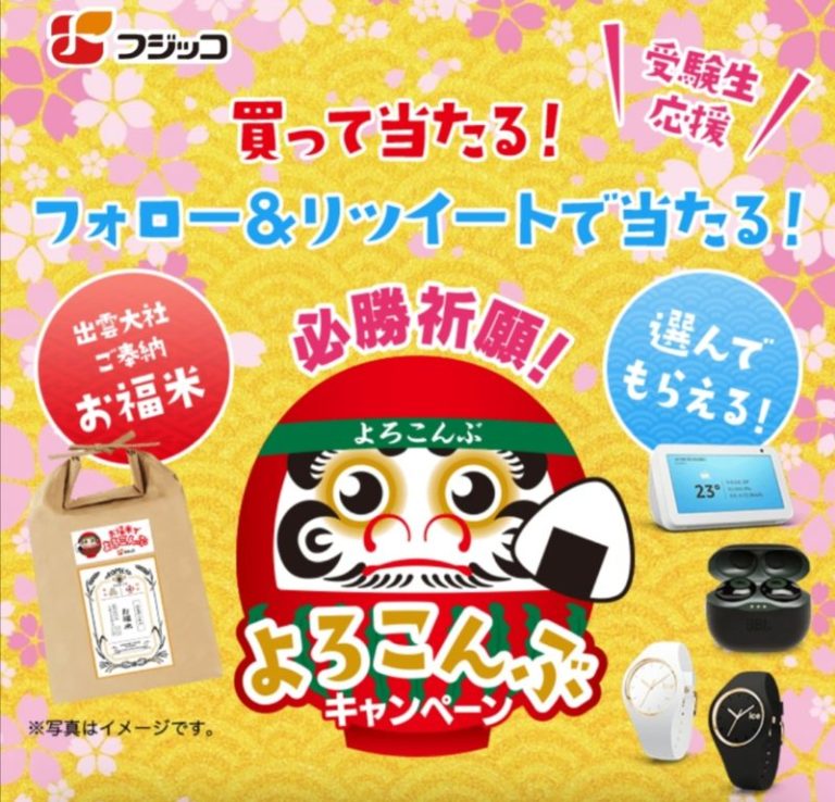 終了【終了】フジッコ 必勝祈願!よろこんぶキャンペーンで必勝祈願よろこんぶ&選べる豪華プレゼントの両方が50名に当たる(20/2/10まで)