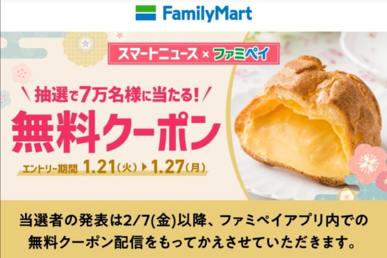 当選者には2月7日以降にファミペイアプリ内での無料クーポン配信が届きます