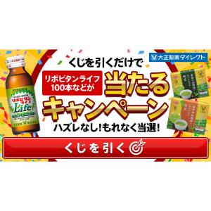 終了Yahoo!ズバトク「リポビタンライフ100本」「大正製薬健康対策トクホ緑茶セット」など510名、その他クーポンも当たる!(21/12/19まで)