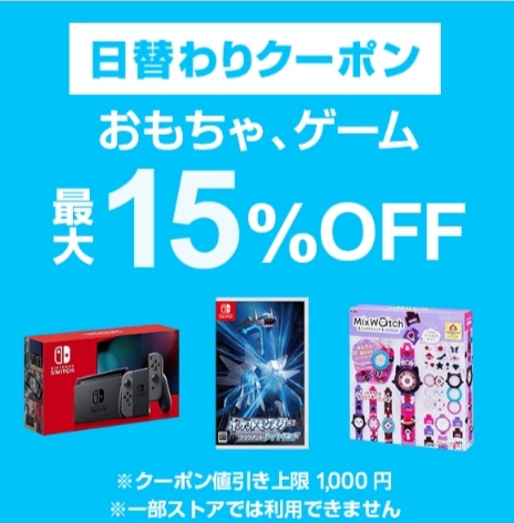 ゲーム、おもちゃカテゴリ対象で注文金額100円以上の商品1個が対象。値引き上限は1,000円。12月9日のみ使用可能ですが、先着順なのでご注意を!まずはクーポンをゲット!どんな商品があるのか、下記サイトより確認できます。