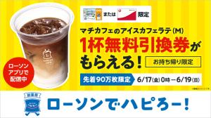 ローソンでハピろー!「マチカフェ アイスカフェラテ(M)」1杯無料引換券を先着90万名様にプレゼント!