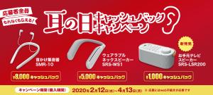 首かけ集音器 SMR-10 キャッシュバック金額 8,000円 ウェアラブルネックスピーカー SRS-WS1 キャッシュバック金額 5,000円 お手元テレビスピーカー SRS-LSR200 キャッシュバック金額 1,000円 お手元テレビスピーカー SRS-LSR100 キャッシュバック金額 1,000円