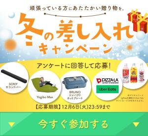 アサヒ飲料LINE公式アカウントを友だち追加し、アンケート回答ページにて回答後、景品を選択して応募すると「年末パーティー快適グッズ」が合計400名に当たりますよ~。当選は1回までですが、期間中は何度でも応募可能。