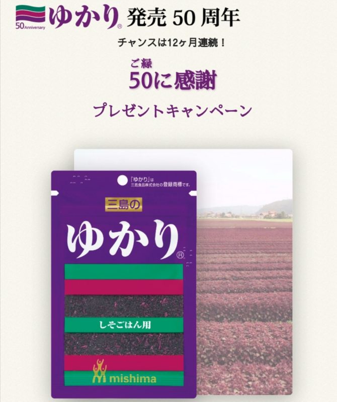 2020年1月からの1年間、毎月5日から15日まで、月替わりで特別なプレゼントが当たる「ゆかり®」誕生50周年を記念した12ヵ月連続のプレゼントキャンペーンです。