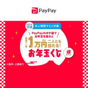 キャンペーン期間中に、お年玉のポチ袋を使って残高を500円以上送ると、12回に1回の確率で1万円~100円相当のPayPayポイントが抽選で送った方と受け取った方の双方に当たりますよ~。諸条件は必ず公式サイトで確認してね!