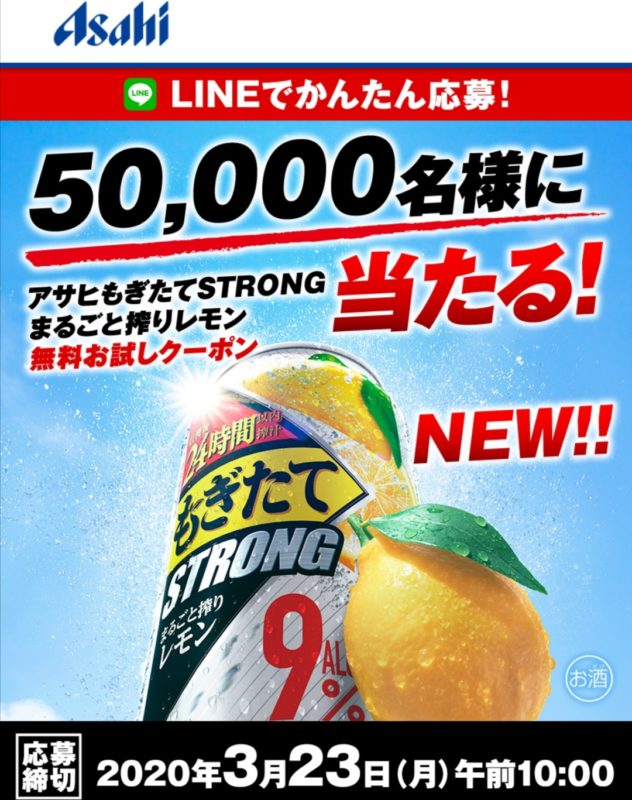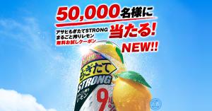 アサヒのもぎたてSTRONGまるごと搾りレモン』無料お試しクーポンプレゼントキャンペーン。