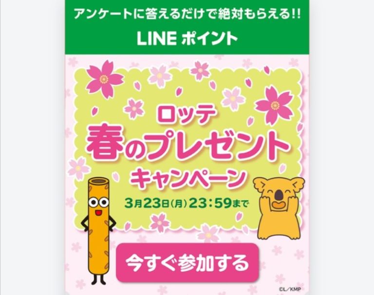 ロッテのアンケートに答えると景品としてLINEポイント2ポイントが全員にもらえるキャンペーンです。