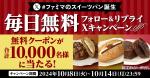 終了ファミリーマート「ファミマ スイーツパン」の無料引換クーポンが合計10,000名に当たる!商品は日替わり。毎日応募。(24/10/14まで)