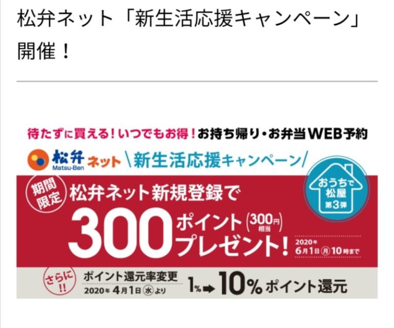 2020年4月1日(水)に松弁ポイント還元率が変更となり、松弁ネット注文につき「100円毎に1ポイント」から「10円毎に1ポイント」に変更となりました。なんと10倍に!