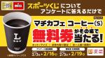 ローソンアプリにて、ローソンIDでログインしてスポーツくじに関するアンケートに回答すると、「マチカフェ コーヒー(S) ホット/アイス無料券」が抽選で5,000名に当たりますよ~!