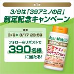 3月9日の「39アミノの日」制定を記念したおトクなキャンペーンの第1弾です。