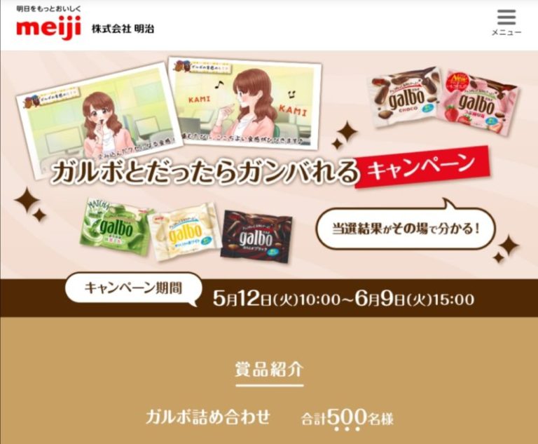 ガルボとだったらガンバれるキャンペーン期間中、フォロー&4つの選択肢から1つを選んでツイートした人の中から、ガルボの詰め合わせ(8種類セット)が500名に当たります。期間中、キャンペーンツイートが4回発信され、各1回、計4回応募することができますよ。