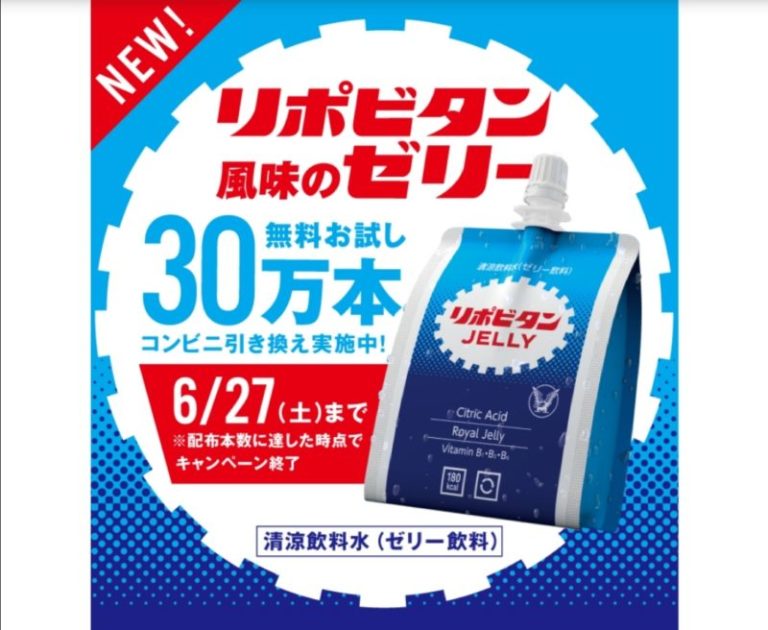 先着で30万名限定「リポビタンJELLY」がプレゼントされるキャンペーン。景品を獲得すると、「リポビタンJELLY」1本をローソンまたはファミリーマートの店頭で引き換えることができますよ~。応募にはLINEアカウントが必要ナリ。